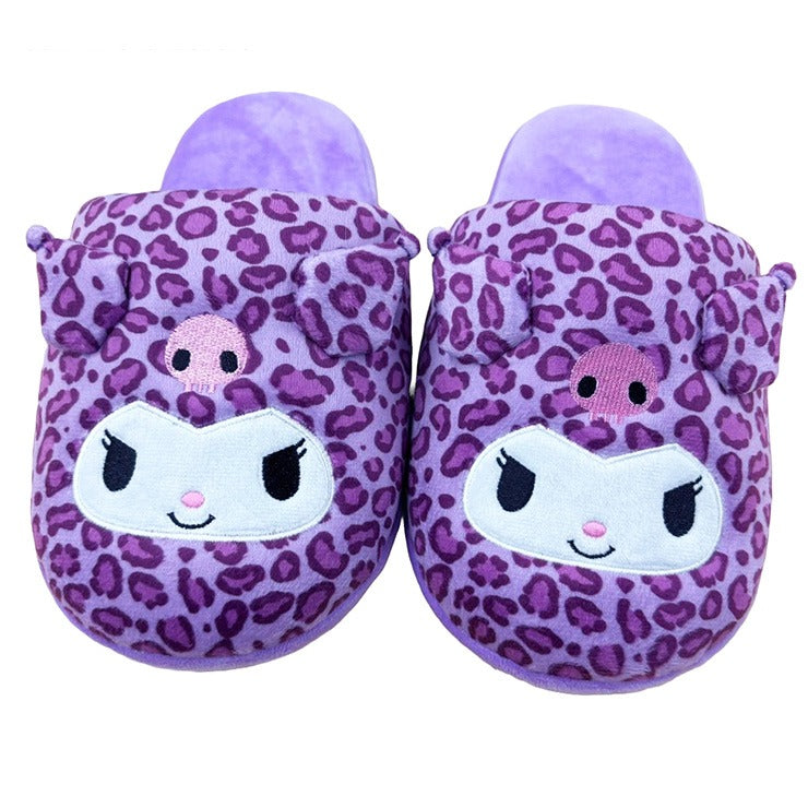 大きな甲部分に大胆に顔を表現。リボンと中板はヒョウ柄。クロミ好きにはたまらないスリッパです。