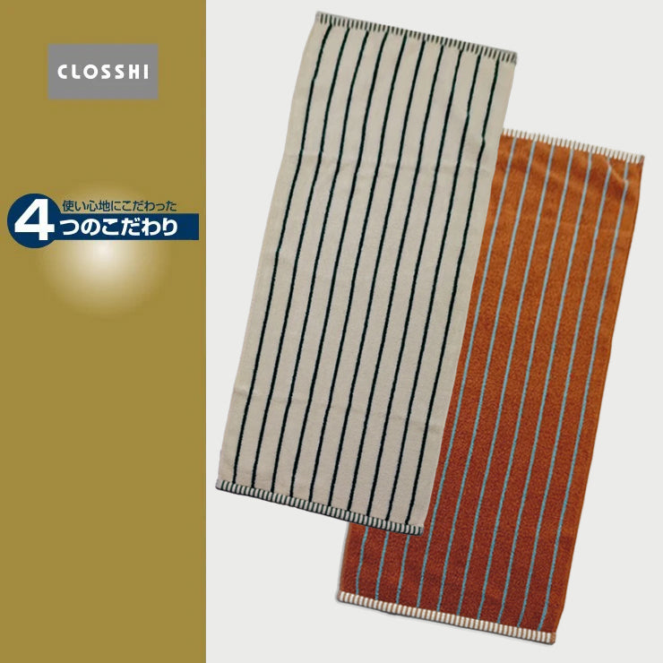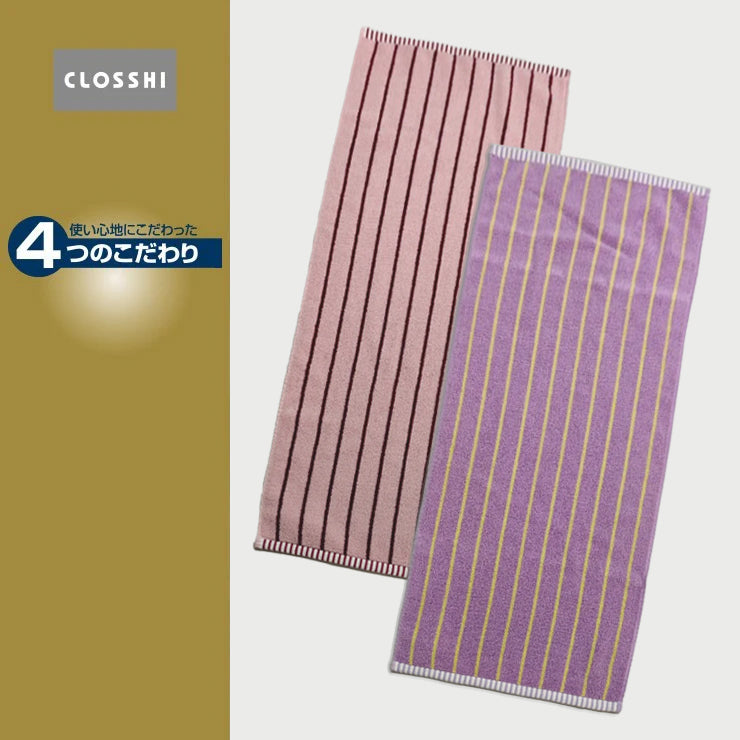 2枚組フェイスタオル(4つのこだわり・細ストライプ)