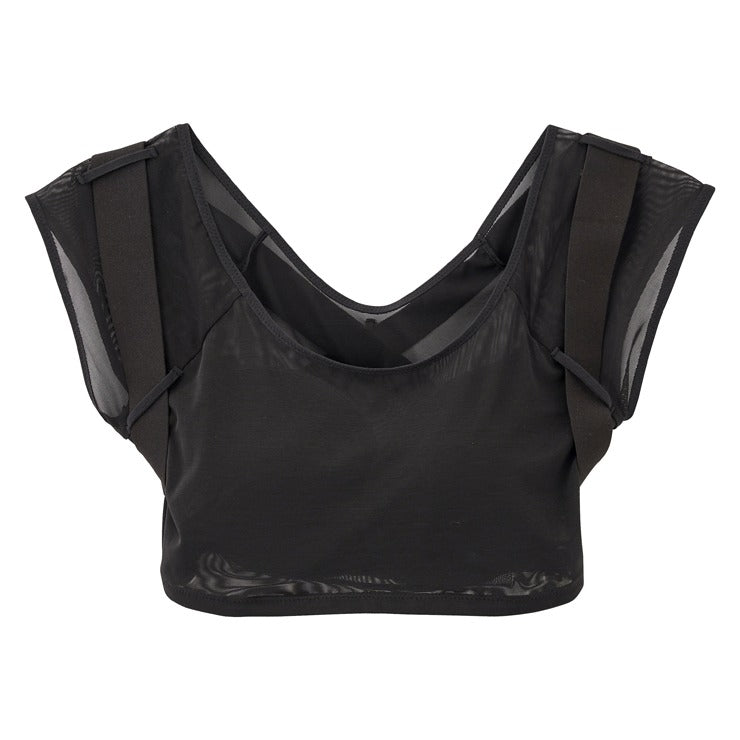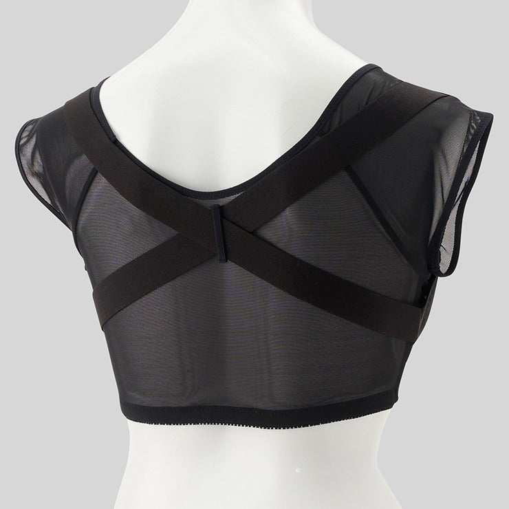 背中のクロステープが肩甲骨を”ぐっと”引き寄せて、 内に入った肩を後ろへサポート。※着用時