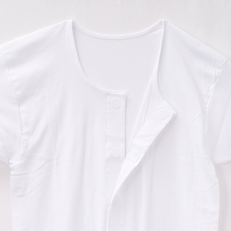 袖付けや袖口が広く、診察時、看護の方にもラクなよう着脱しやすい設計。