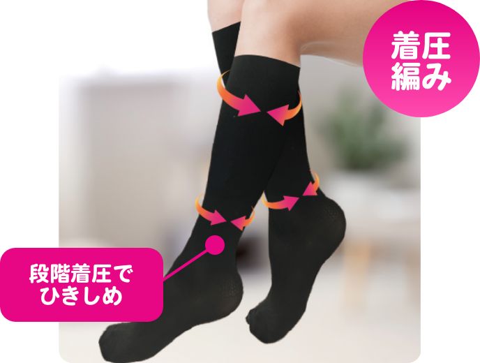 レディース 38cm丈 段階着圧ハイソックス(活き活きラボ)