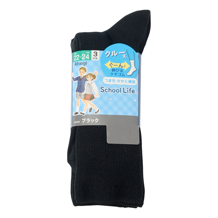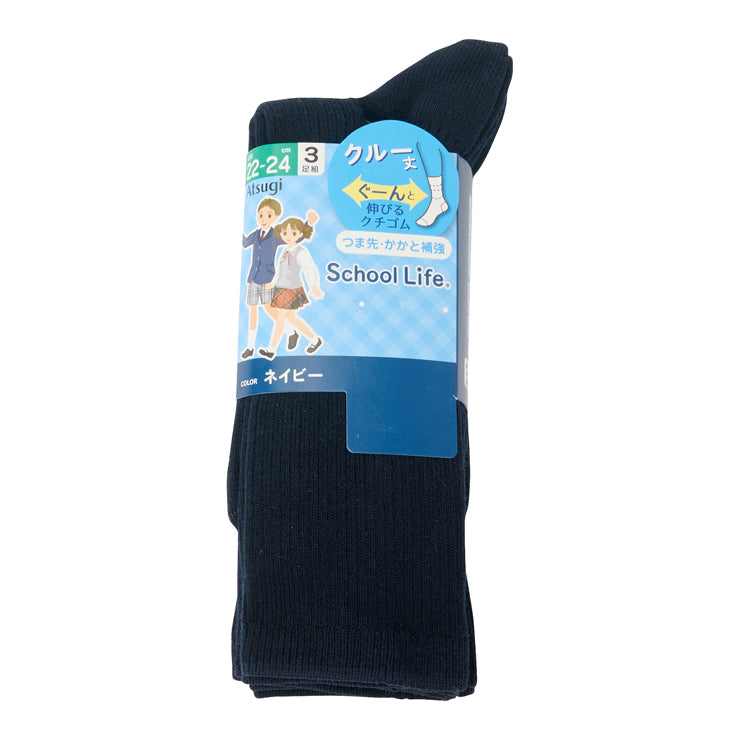 スクール 3足組ソックス クルー丈(22-24cm・School Life)